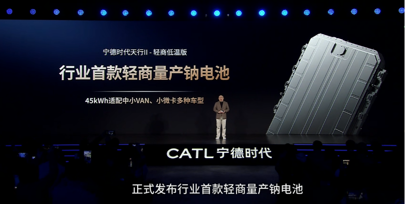 1月22日,宁德时代举办轻型商用车全场景解决方案发布会,其中天行II轻商低温版电池采用轻商领域首款量产的钠离子电池。