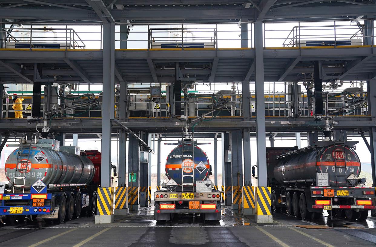 在江铜集团贵溪冶炼厂,数智装酸系统给货车自动装酸(1月21日摄)。 新华社记者万象摄