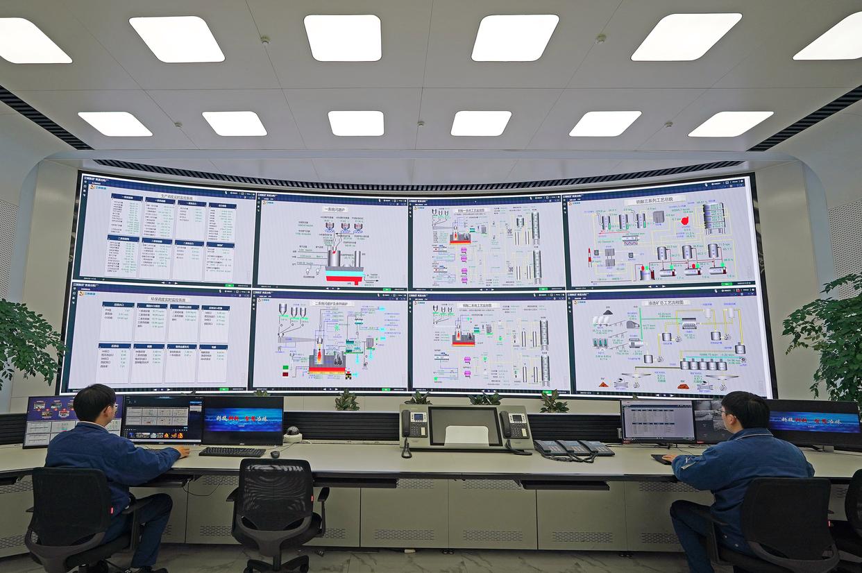 在江铜集团贵溪冶炼厂智能调度中心,工作人员监控实时生产数据(1月21日摄)。 新华社记者万象摄