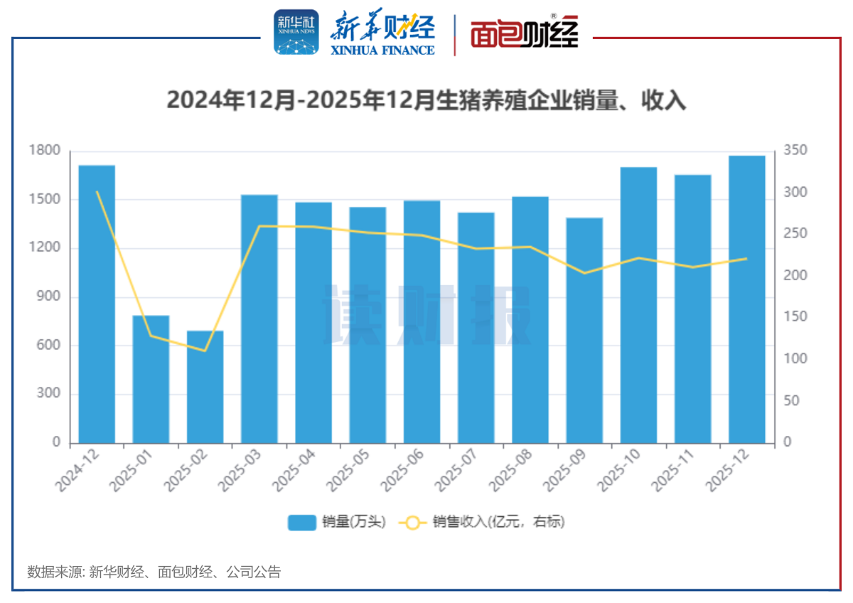 图2:2024年12月-2025年12月生猪养殖企业销量、收入