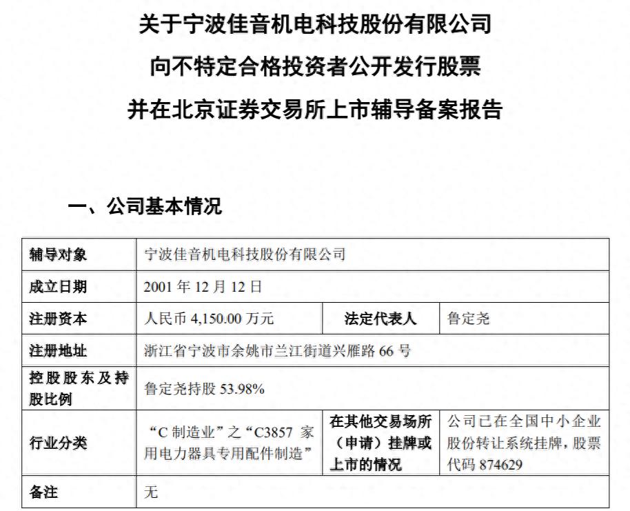 瑞财经王敏 1月21日,宁波佳音机电科技股份有限公司(以下简称“佳音科技”)在宁波监管局启动IPO辅导,拟北交所上市,辅导机构为广发证券。
