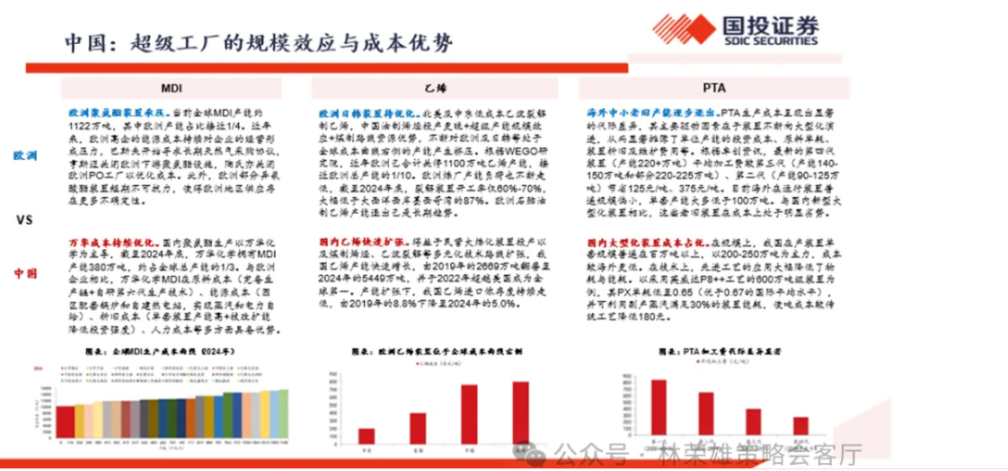 对于这种变化核心是欧洲能源/环保压力下的产能退出,还是中国超级工厂的规模效应下形成的成本护城河。我们认为,其实这两者不是“or”的关系,而是“and”,是二者双向影响的结果。