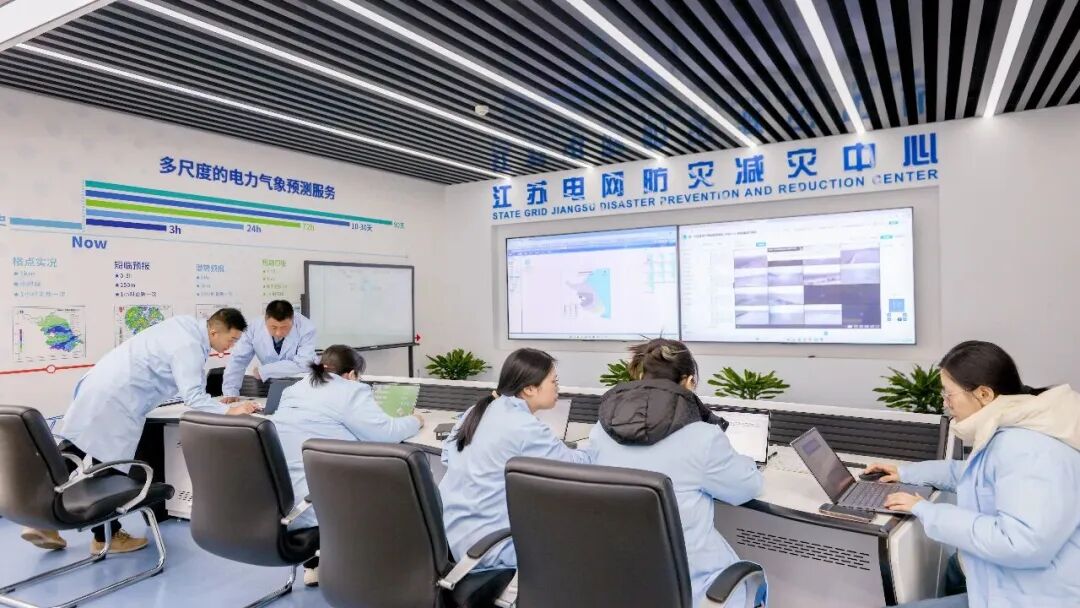 1月19日,江苏电科院专业人员在江苏电网防灾减灾中心跟踪天气变化趋势,研判输电线路覆冰与舞动风险。