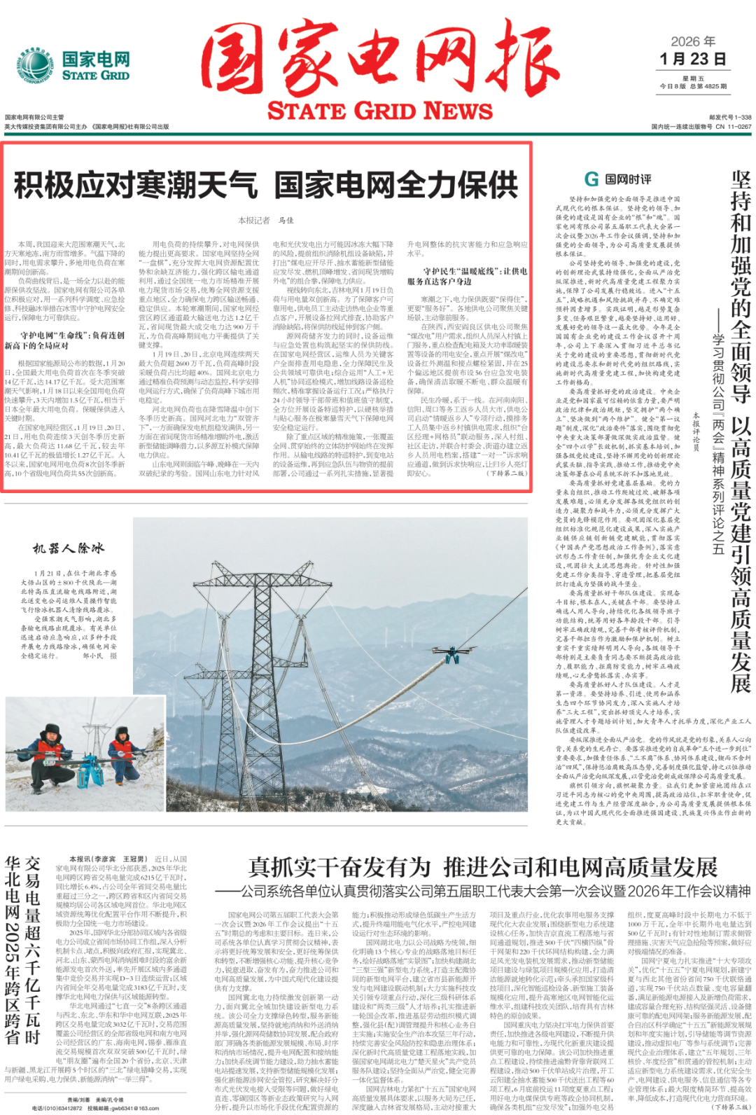 ▲《国家电网报》2026年1月23日1版版面图