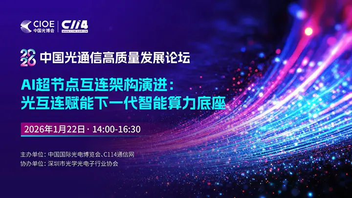 1月22日,CIOE中国光博会与C114联合举办“2026中国光通信高质量发展论坛”线上研讨会——“AI超节点互连架构演进”专场。深入探讨AI驱动下超节点互连架构的演进趋势,聚焦光互连在高性能AI集群中的可行性与落地路径,推动“以网强算、以光赋智”理念在算力基础设施中的实践落地。