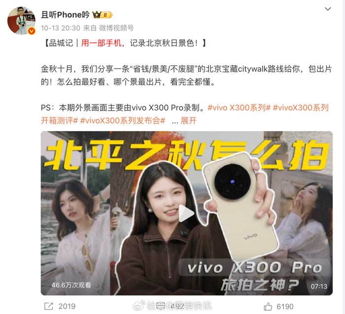 在整个微博生态场域里,发布会预热阶段,会有诸如#vivoX300系列发布会##2025vivo开发者大会#等相关话题,科技类博主和媒体围绕“影像样张”“性能配置”等内容展开猜测与解读。