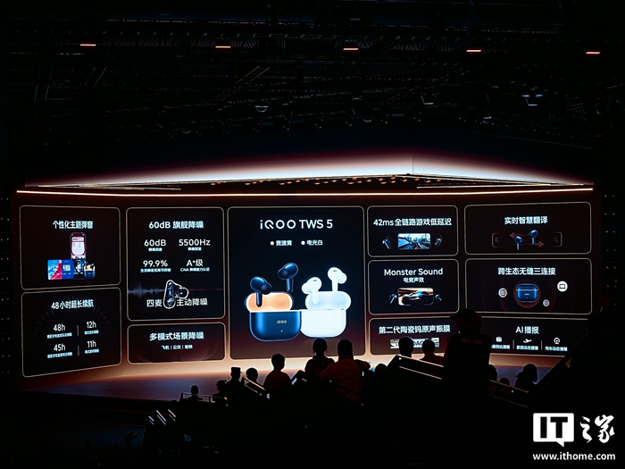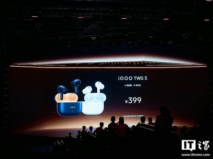 IT之家 10 月 20 日消息,iQOO 正在举行新品发布会,推出 iQOO 15 手机、Pad 5e 平板等新品,其中 iQOO TWS 5 耳机拥有四麦克风主动降噪系统,支持跨生态无缝三连接,售价 399 元。