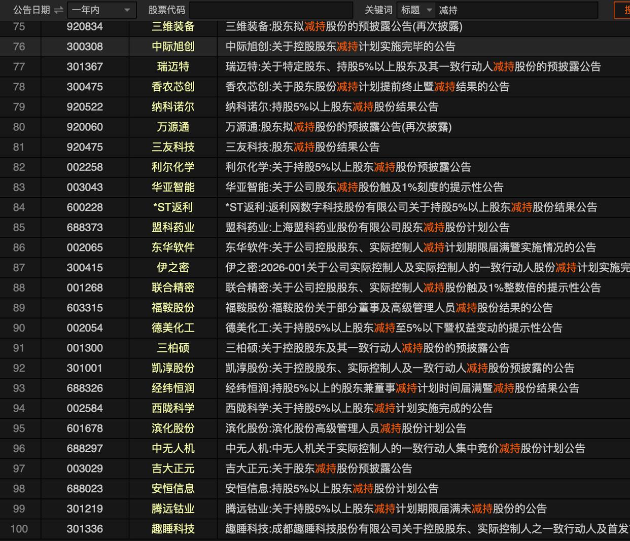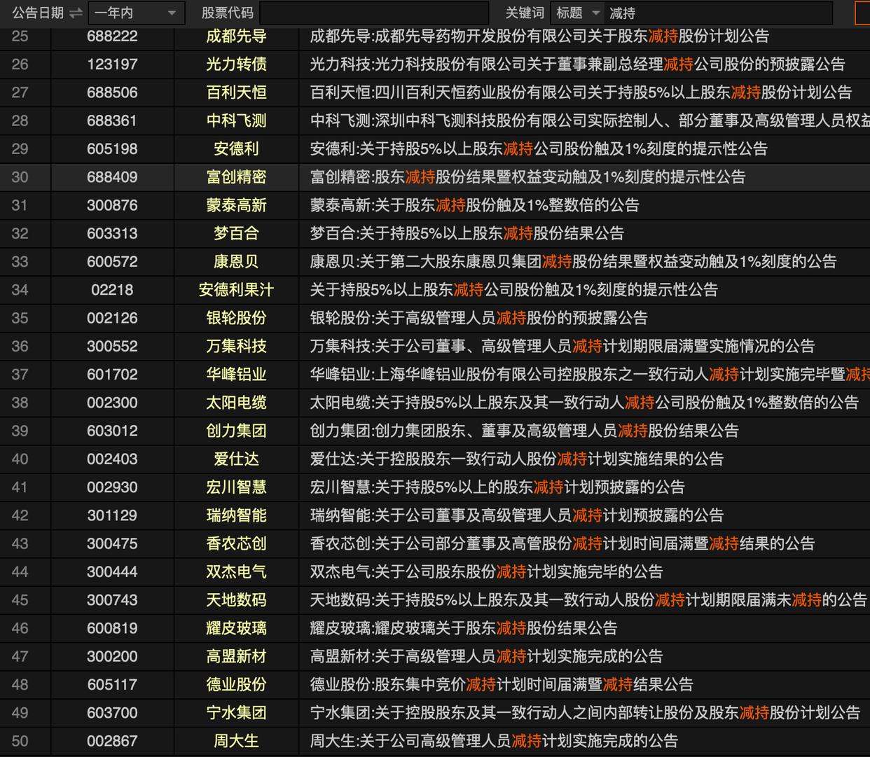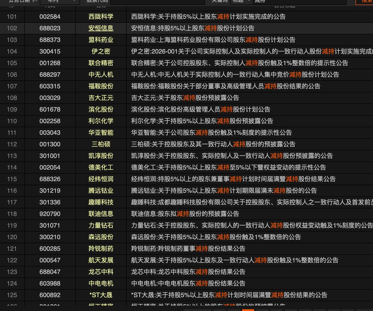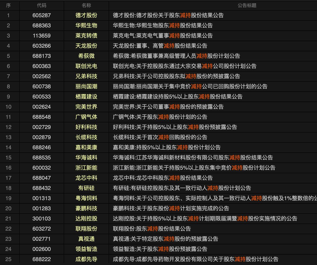 这些减持信息太多了,直接截图给大家自己去看,注意啊,这仅仅是上周一周的公告信息,未来还有很多减持的信息,我也会及时更新,大家千万要注意风险。