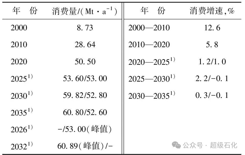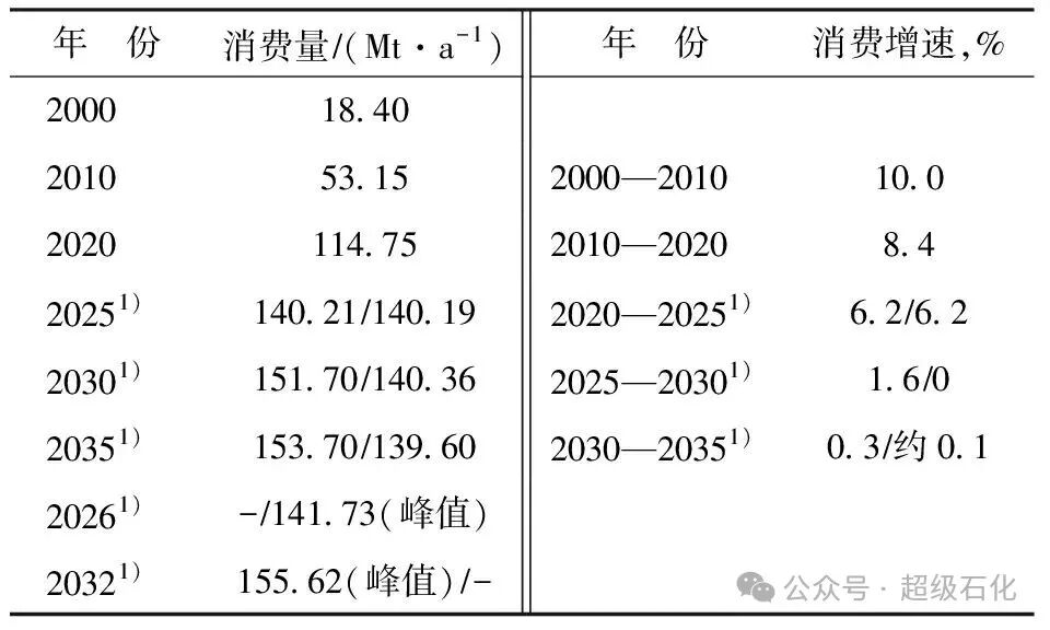 1)斜杠前为基准消费情景下数据,斜杠后为约束消费情景下数据。基准消费情景为在已发布政策和行业规划目标下的发展情景,约束消费情景为在满足气候温升小于2 ℃目标下的发展情景(下同)。