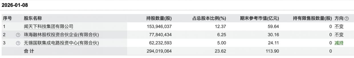 此外记者注意到,公司第三大股东无锡国联集成电路投资中心,此前也计划通过大宗交易与集中竞价方式,合计减持不超过3733.91万股股份,占公司总股本的3%,而这已是无锡国联在2025年年内的第二次减持计划。早在2025年6月5日,该股东就宣布拟减持不超3%股份,最终在6月27日到9月26日完成0.9979%的减持。截至2026年1月8日,无锡国联仅持有闻泰科技5%股份,从闻泰科技二股东变为三股东。若上述减持计划全额实施,其持股比例将降至4.77%,退出前三大股东行列。