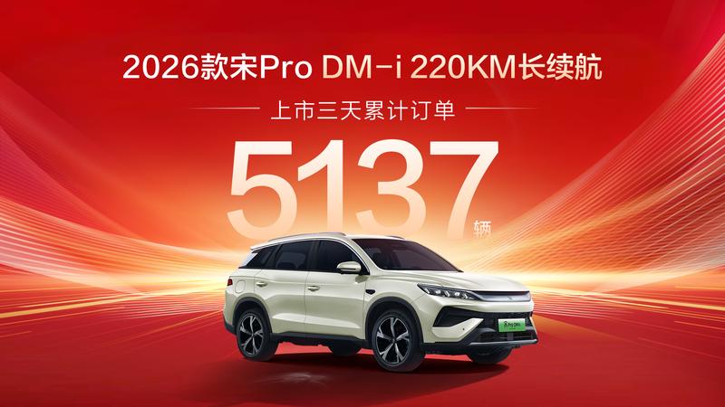 宋Pro DM-i最懂家庭用车需求,2026款车型搭载26.6度大电池,纯电续航达到220公里,同级最长!日常上下班,充电一次能开两周,通勤成本比坐地铁还低,即便周末郊区露营、跨城出游,两周一充也完全够用,轻松实现“纯电自由”。这份精准戳中家庭核心需求的产品力,也直接引爆了市场,新车上市三天累计订单便达5137辆,火爆程度创新高,用实打实的数据印证了“家庭神车”的口碑与实力。