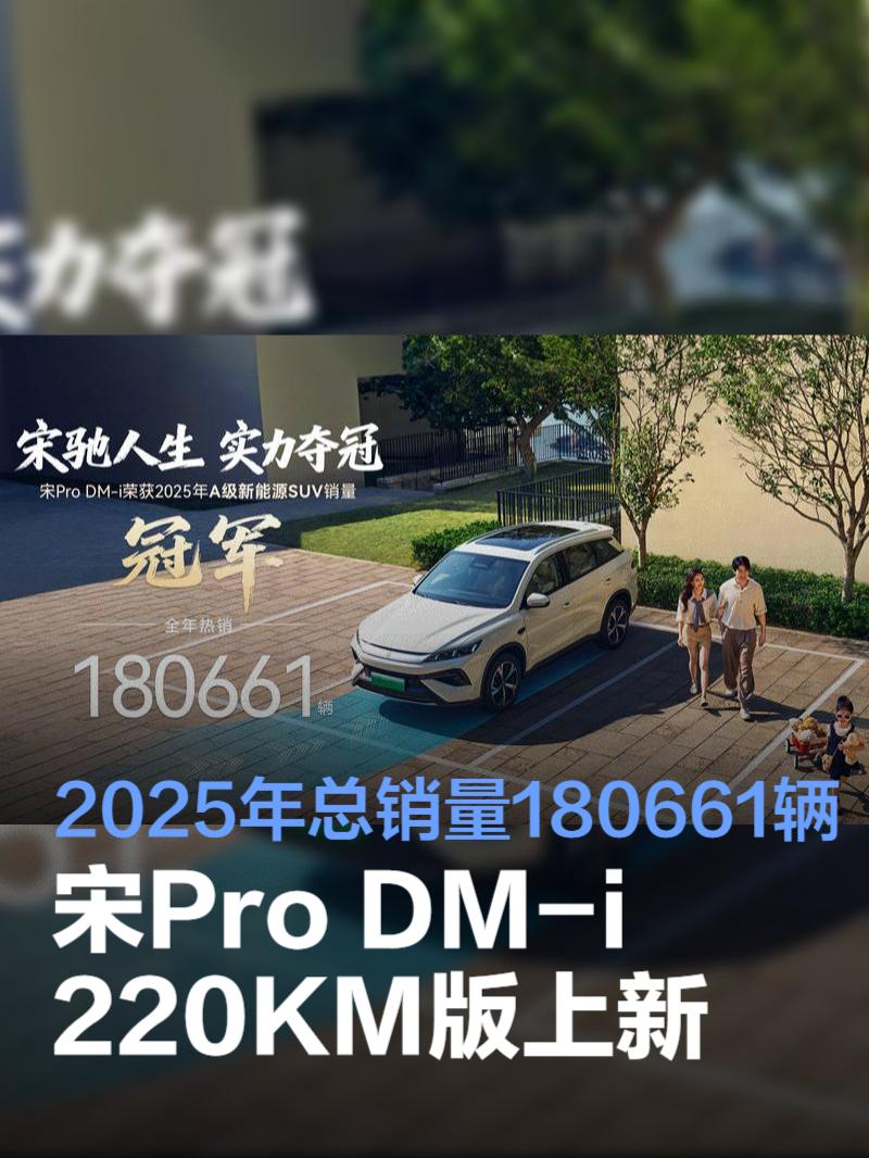 2026年伊始,“冠军宋”再升级,2026款宋Pro DM-i加推220KM长续航版,限时售价11.98万元-12.78万元,重新定义A级插混SUV市场的价值标杆。