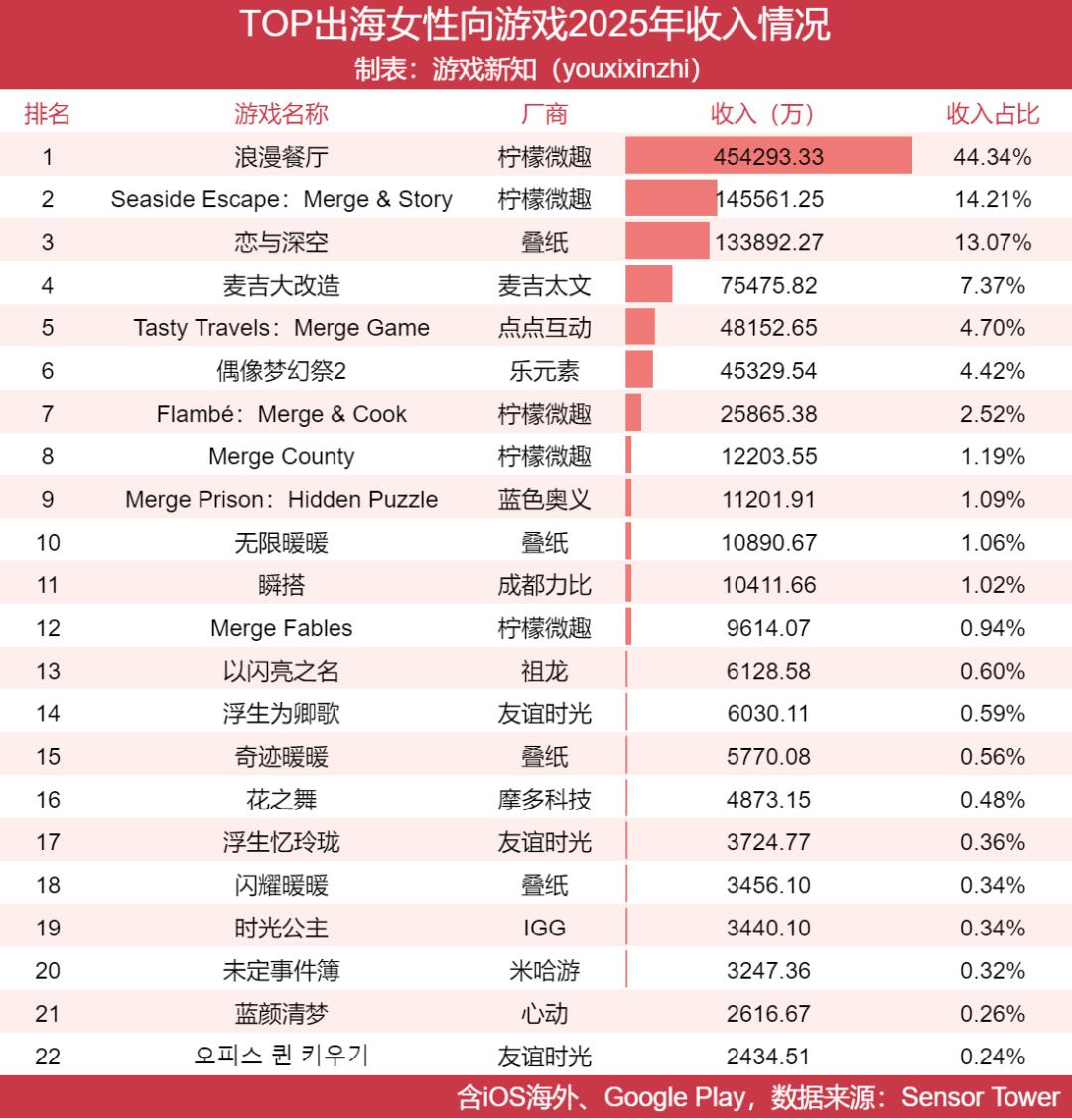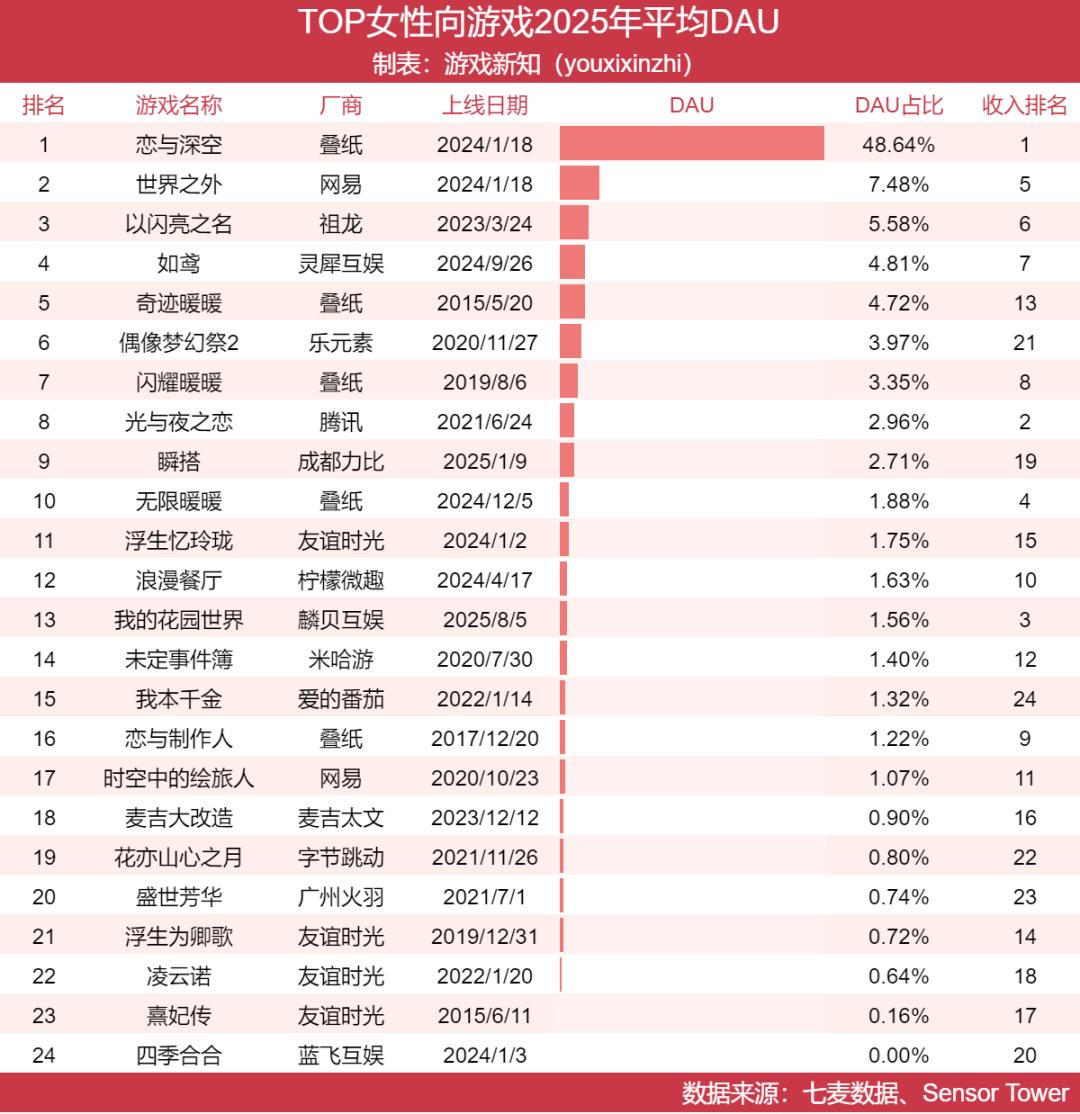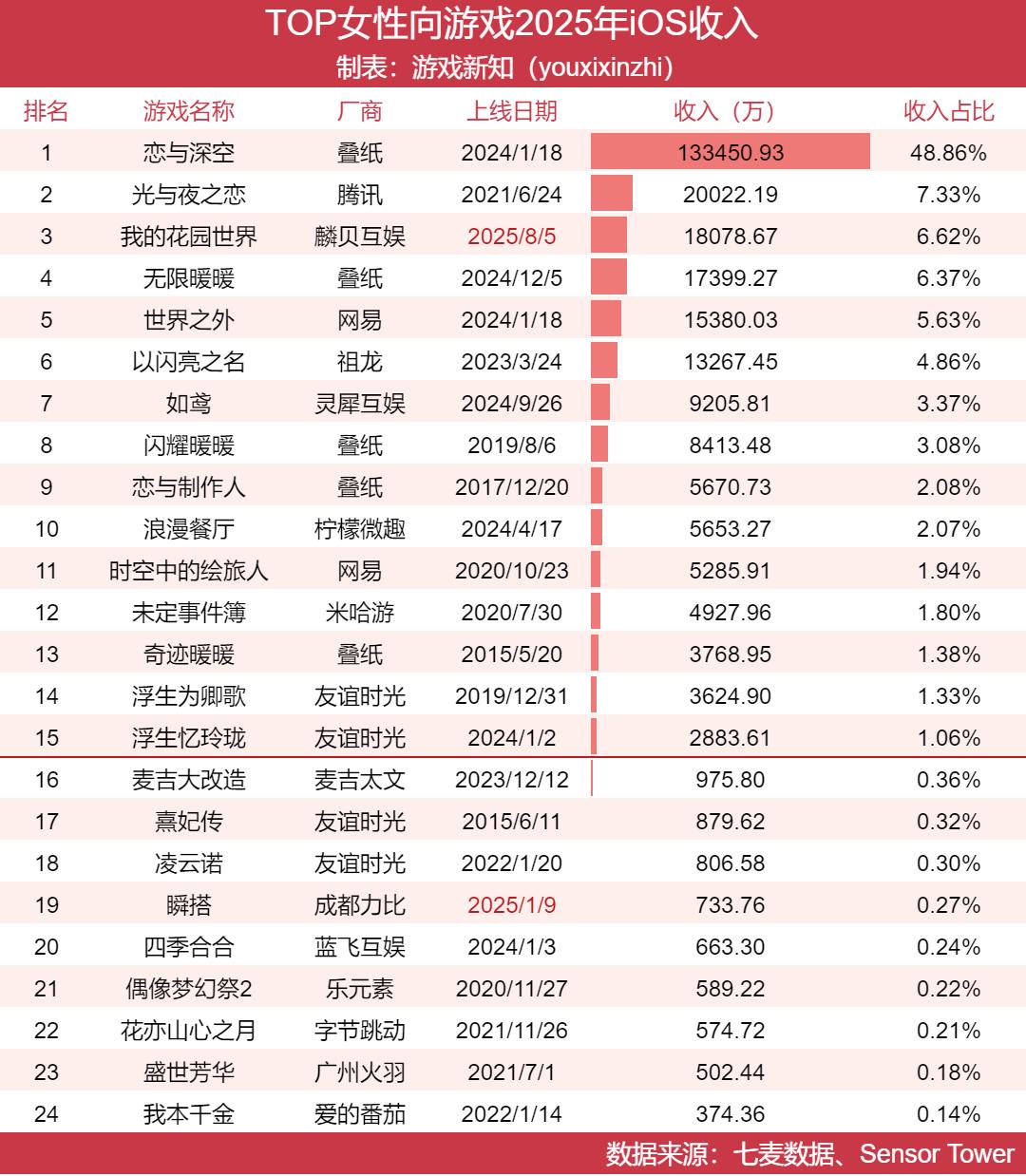 2025女性向市场:《恋与深空》一骑绝尘,柠檬微趣统治海外