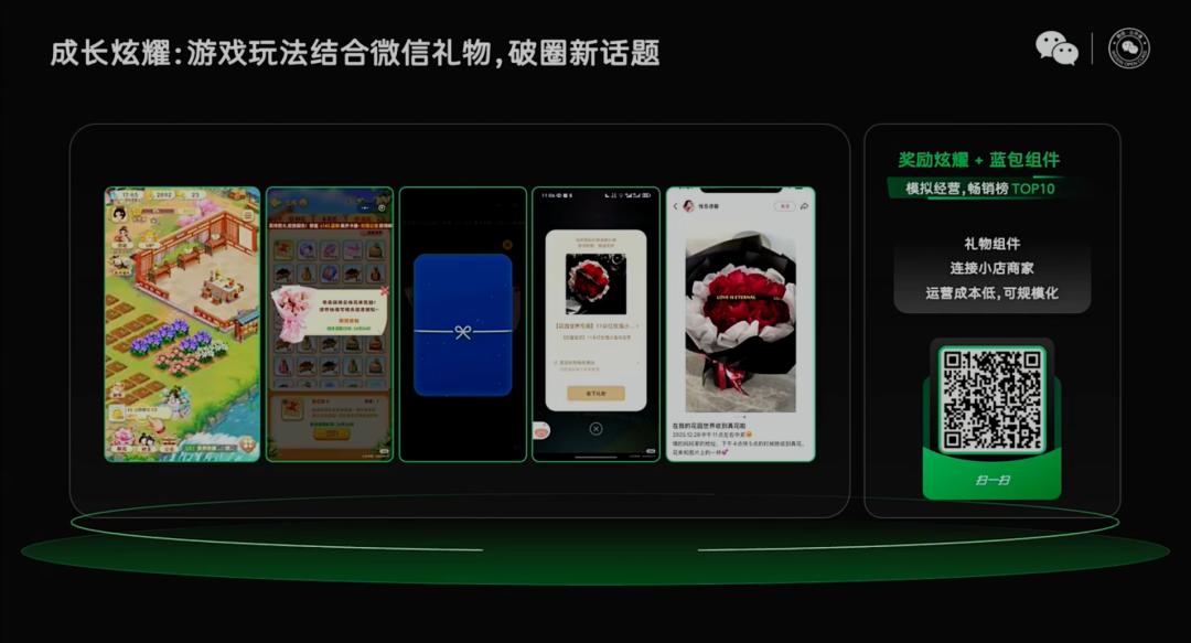 在此基础上,尤其是小游戏版本,设计了完成任务有概率获得惊喜礼物掉落的机制,玩家填写地址就能收到真的鲜花。这种打破虚拟和现实隔阂的设计,让玩家收到鲜花后的自发分享,激发了惊人的社交破圈裂变。