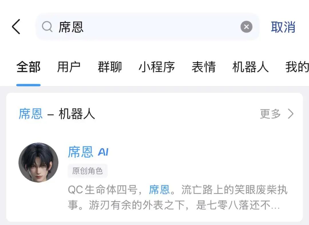 互联网巨头们也早有类似打算:字节曾在2024年上半年推出过一款AI社交陪伴产品《猫箱》;网易曾依托旗下泛兴趣社区《LOFTER》,软启动过一个AI情感向的、角色扮演玩法的功能板块《破次元恋人》;连腾讯也在QQ上测过一些AI情感对话机器人,目前能找到席恩、代柯等等。