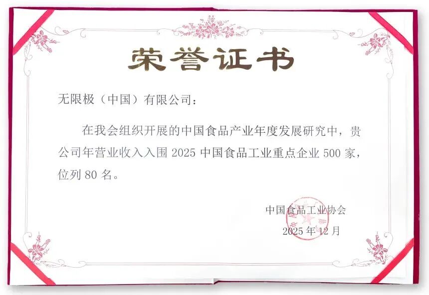 我们上榜了!无限极荣登“2025中国食品工业重点企业500家名录”