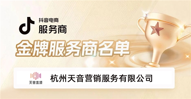 近日,抖音电商正式发布2026年Q1服务商牌级评定结果。天音直播凭借卓越的全案服务能力,以及在直播、短视频、商城等多元业务场景下的领先表现,获评「金牌品牌服务商」认证!