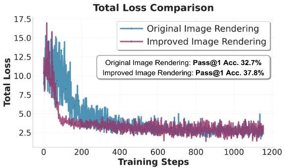 如上图所示,单行渲染相比多行渲染收敛更快,同时能够更好地契合语言模型从左到右的序列生成特性。