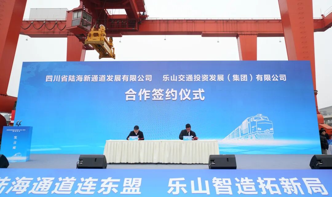 此次首发班列是乐山交投集团践行国家重大战略的核心成果。在乐山市人民政府与四川省港航投资集团有限责任公司的统筹指导下,集团紧密协同夹江县人民政府和四川陆海新通道发展有限公司,高效完成了站点协调、货源组织、运行保障等全链条任务。仪式现场,乐山交投集团与四川省陆海新通道发展有限公司签署合作协议,双方将围绕通道共建共享、班列常态化运营、枢纽节点能力提升等领域深化合作。