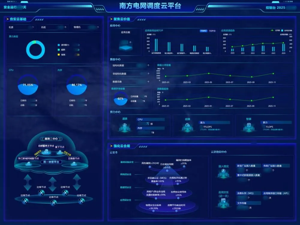 麒麟软件银河麒麟操作系统发挥了至关重要的基础作用,基于其构建的“多算智能与多芯容灾”高可靠调度云,稳定承载了南方电网200多套关键业务系统,覆盖从电网实时调度到电力市场运营的全场景业务。在实际运行中,该平台展现出显著效能,通过云平台与业务系统的跨层级智能感知与诊断,实现了从“被动响应”到“主动预警、智能处置”的运维模式变革。在安全方面,依托银河麒麟操作系统在内的国产基础软硬件构建的防御体系,有效提升了电网应对未知威胁的能力,增强了系统韧性。在赋能清洁能源发展方面,依托其强大的算力与人工智能分析能力,有效支撑了新能源发电功率的精准预测与高效调度,为高比例可再生能源接入电网提供了可靠的技术支撑,积极服务于“双碳”目标。