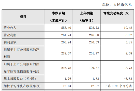 在盈利上,2025年,南京银行实现营业收入555.40亿元,同比增长10.48%,实现归母净利润218.07亿元,同比增长8.08%,基本每股收益1.76元/股,同比下降3.83%。