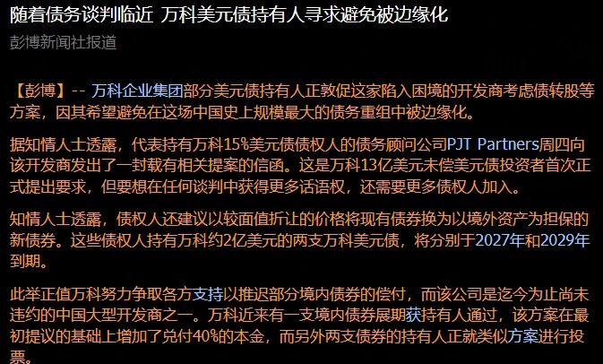 5.彭博依然强调当局要求万科准备整体重组方案。