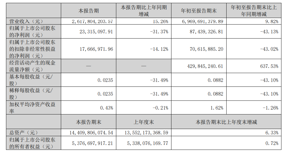 鉴于宝武镁业尚未发布2025年全年的业绩情况,回顾其2025年的三季度报告可以看出:前三季度公司实现营业总收入69.7亿元,同比增长9.82%;归母净利润8743.93万元,同比下降43.13%;扣非净利润7061.59万元,同比下降43.02%。