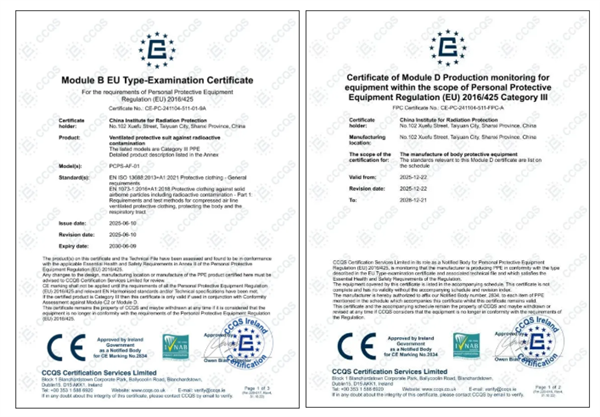 快科技1月23日消息,据“中核集团”官微发文,中国辐射防护研究院自主研发的压缩空气送风式内照射防护服近日通过欧盟CE认证(Module B+D组合认证),成为我国首款获此资质的防护气衣产品。