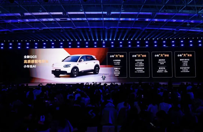 按照规划,今年一季度奇瑞将会发布3款,全年共发布17款以上的新产品,覆盖多品牌多车型的AI产品上市。其中全新QQ3作为一款6万级的入门级小车,搭载灵犀智舱+ Carmind 大模型,支持可见即可说、多场景语音互动,同时猎鹰500系统、高速 NOA、城市记忆领航以及全场景泊车能力等辅助驾驶功能也均实现上车。