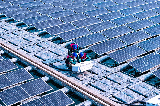 国网山东德州供电公司员工在光伏电站协助巡检设备。