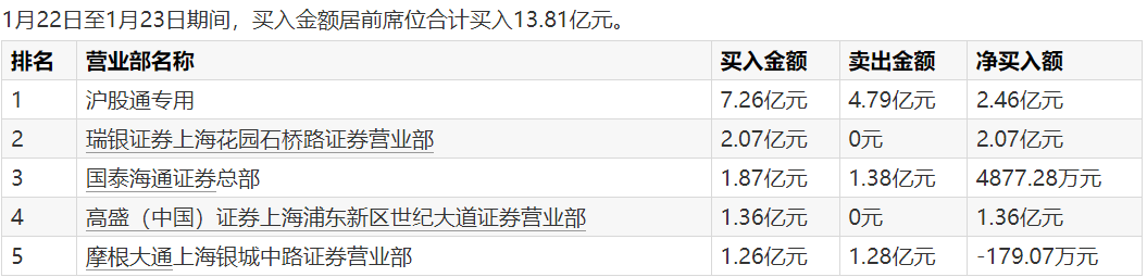 龙虎榜数据显示,1月22日至1月23日期间,前五营业部席位合计成交23.46亿元,其中买入金额为13.81亿元,卖出金额为9.65亿元,合计净买入4.16亿元。近一个月,白银有色累计3次登上龙虎榜。