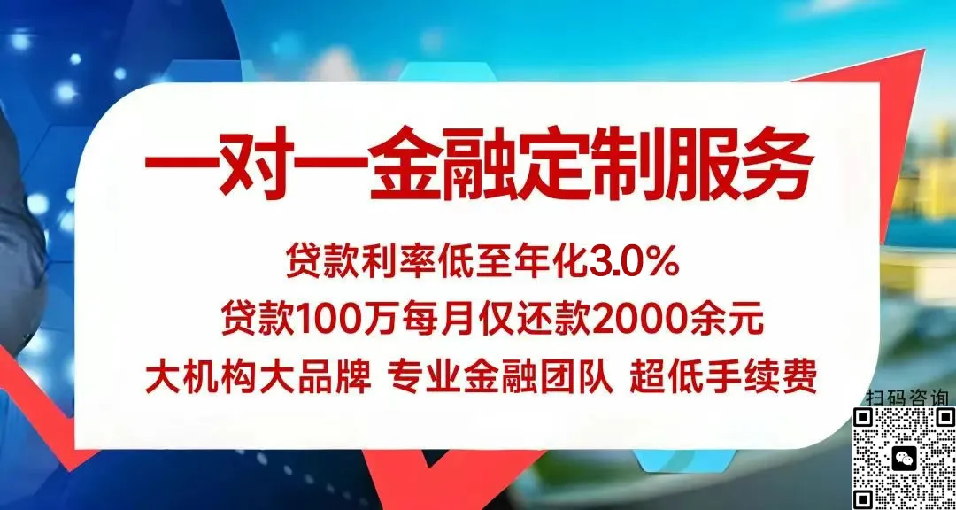 最低利率低至年化3.0%,先息后本,贷款100万每月只用还2500元。