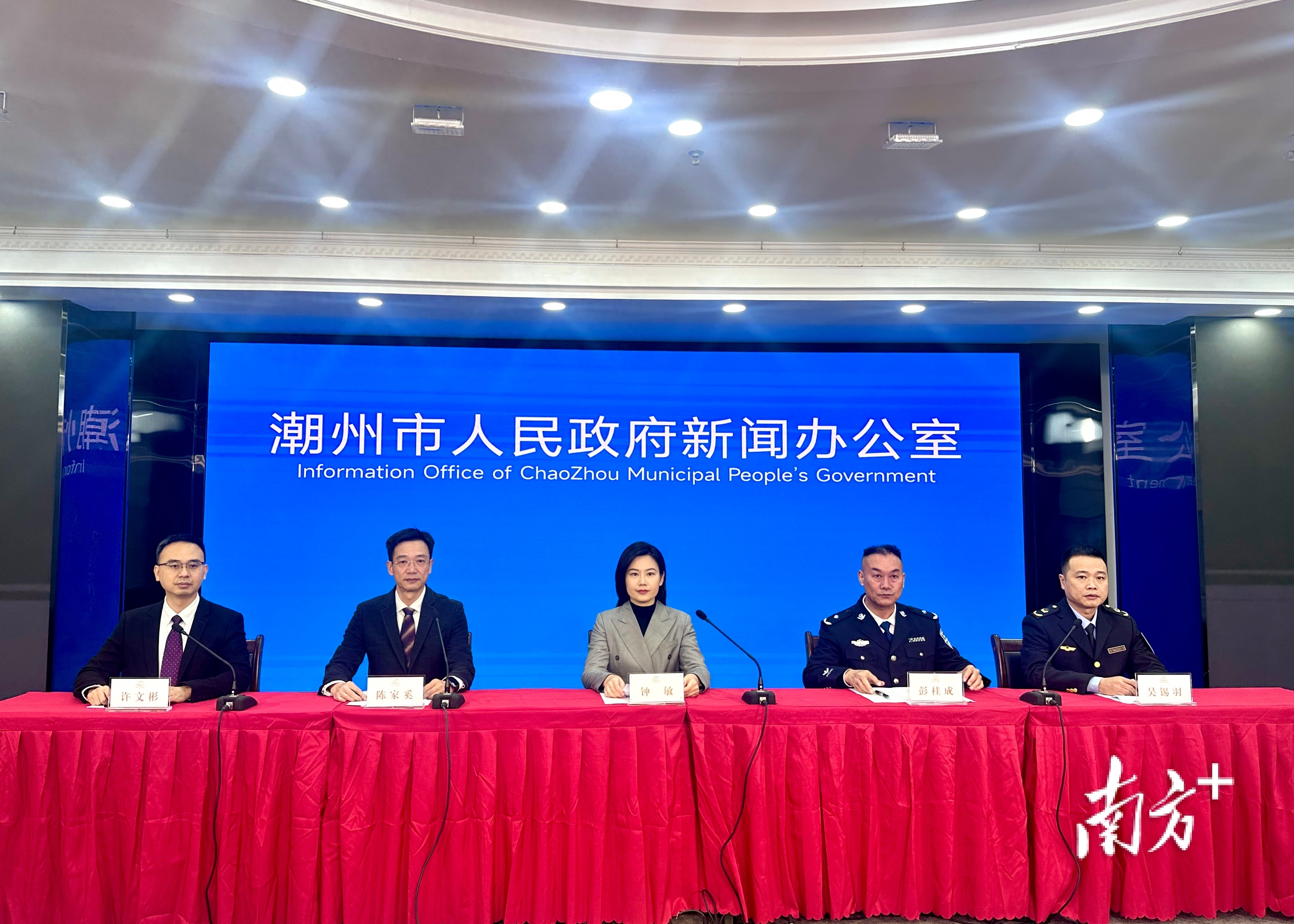 1月23日,2026年潮州市春节元宵节文体活动及配套保障新闻发布会上,潮州市文广旅体局、公安局、市场监管局介绍活动组织筹备情况。