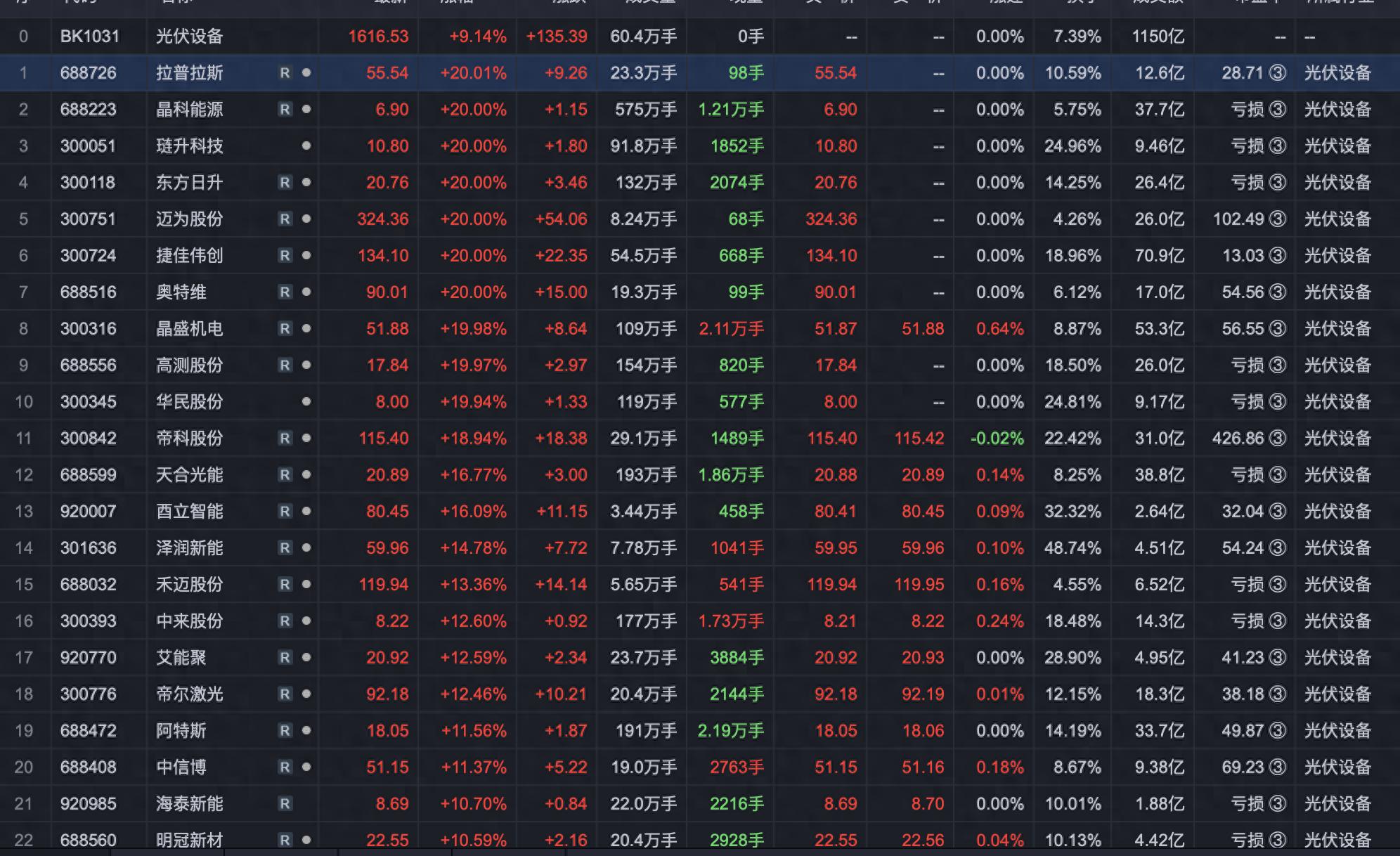 光伏板块1月23日行情