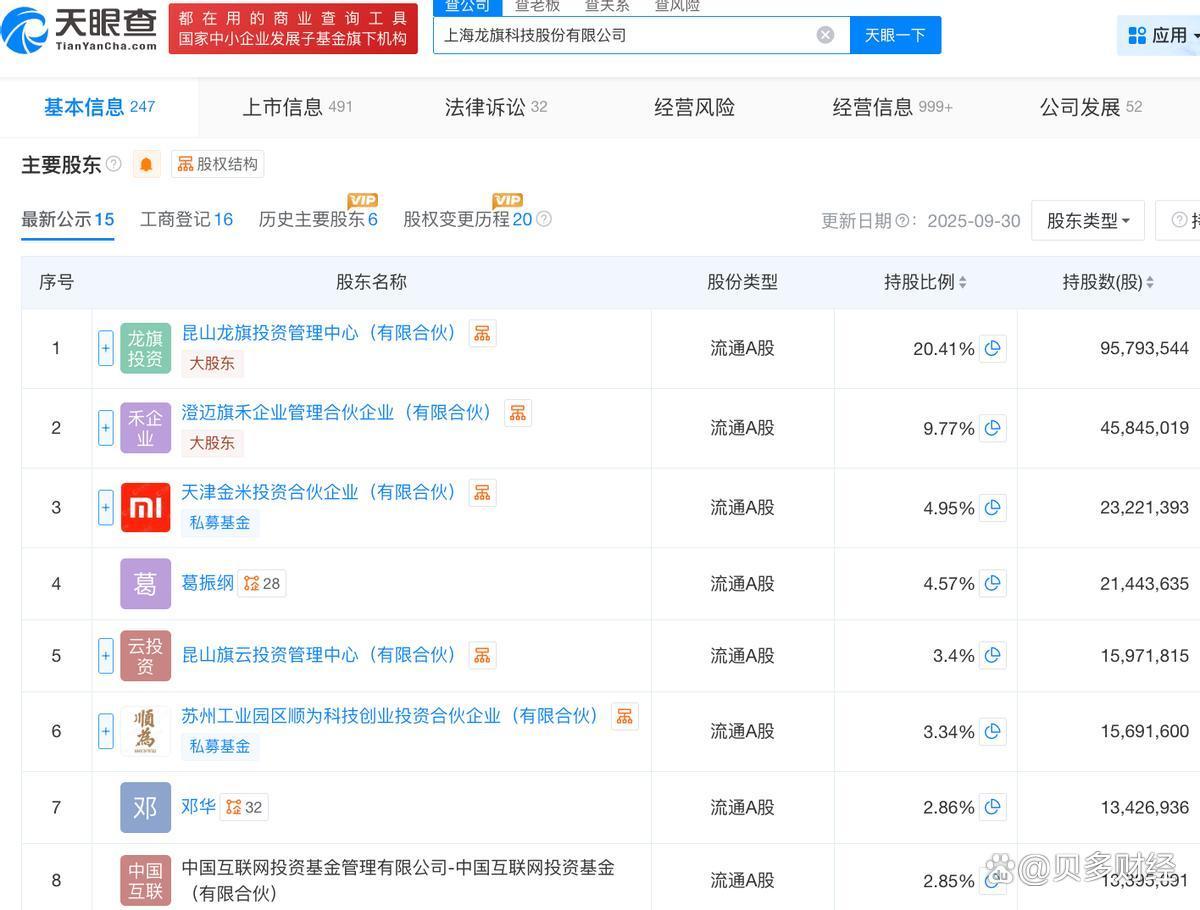信息显示,龙旗科技成立于2004年10月,前身为龙旗科技(上海)有限公司。目前,该公司的注册资本约为4.65亿元,法定代表人为杜军红,主要股东包括昆山龙旗投资管理中心(有限合伙)、澄迈旗禾企业管理合伙企业(有限合伙)等。