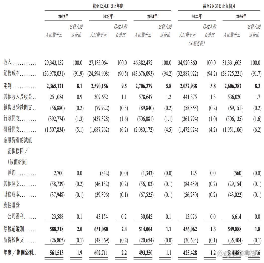 2025年截至9月30日止九个月(前三季度),龙旗科技的营收约为313.32亿元,2024年同期约为349.21亿元;净利润约为5.14亿元,经调整净利润约为6.04亿元,经调整EBITDA约为9.68亿元。