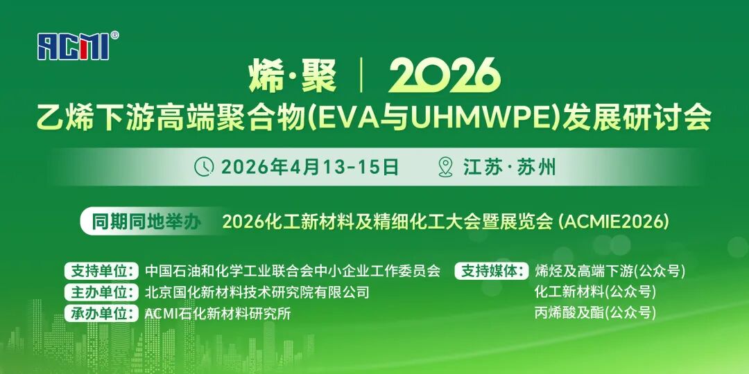 我院定于2026年4月13-15日在江苏苏州举办2026化工新材料及精细化工大会暨展览会(ACMIE2026),以及“特塑·热点| 2026(第二届)特种工程塑料产业峰会”。