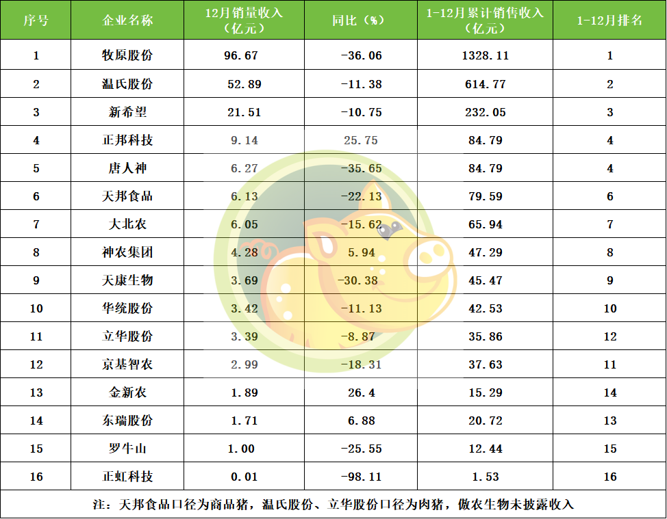 近期,生猪养殖企业12月的销售数据陆续发布。