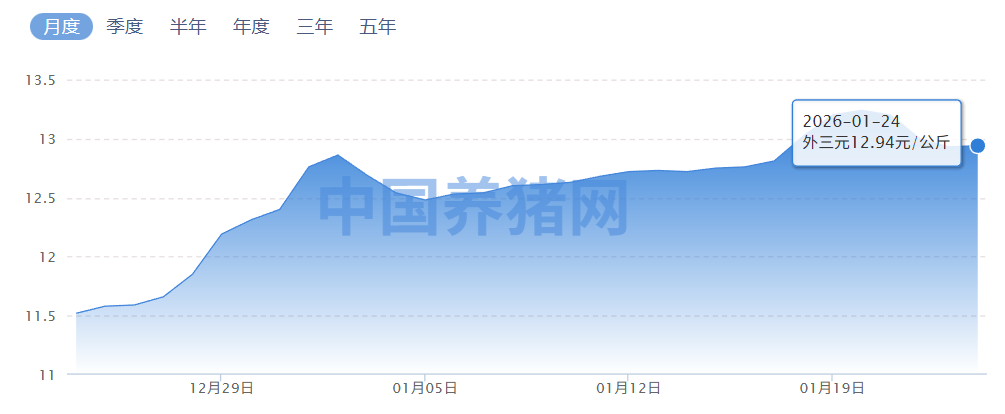 进入1月中旬之后,生猪价格开始发生转变。多地猪价在短短几周内累计上涨超1.5元/公斤,涨幅超13%。特别是,华中地区部分地区生猪报价已触及14元/公斤的高位,成为当前全国猪价的高点区域。