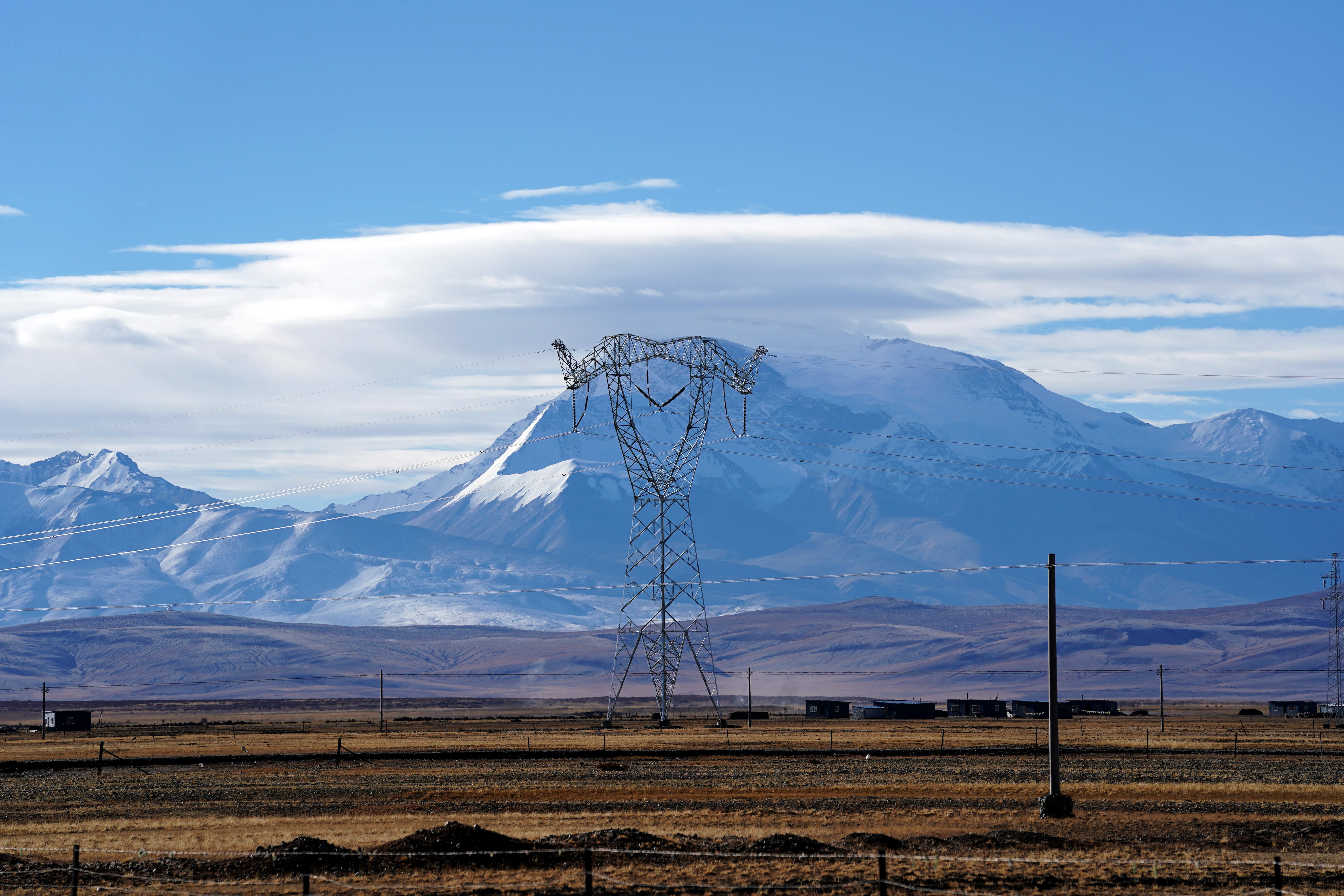 这是在西藏阿里地区普兰县拍摄的西藏阿里与藏中电网联网工程输电铁塔(新华社资料图片)