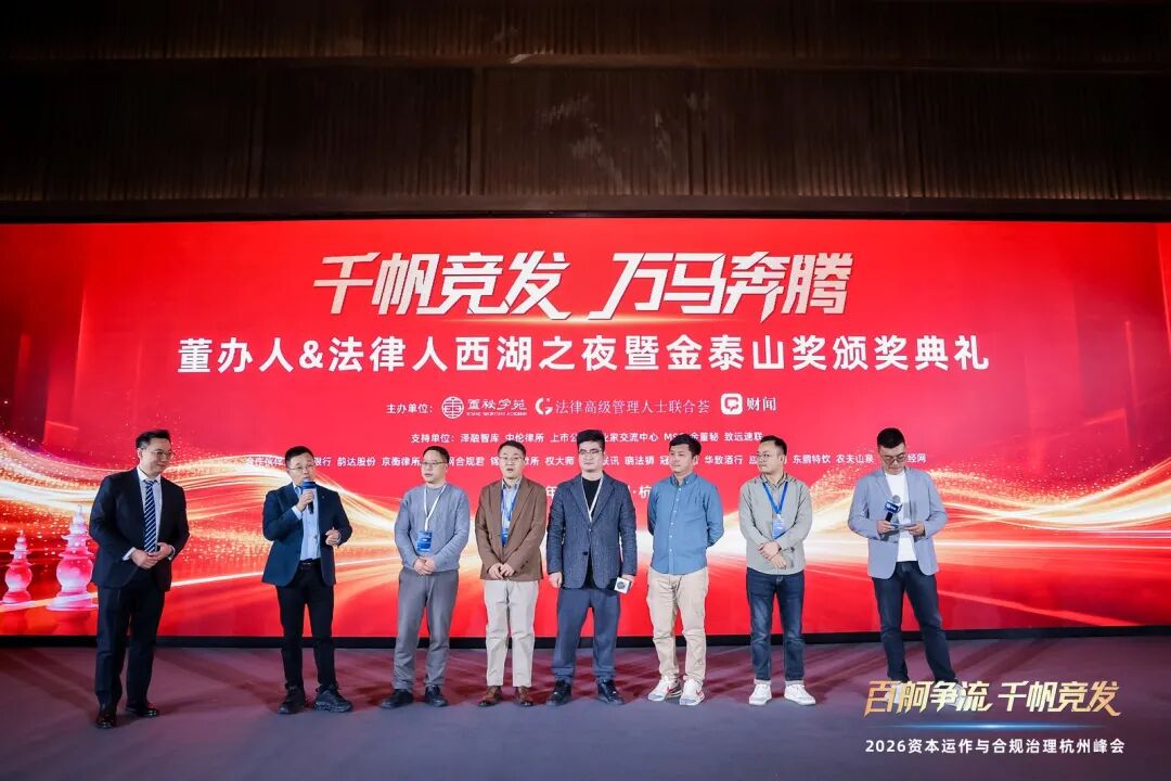 在1月22日举行的"2026资本运作与合规治理杭州峰会"上,备受关注的首届金泰山奖正式揭晓。该奖项由董秘学苑联合多家专业机构共同发起,旨在表彰在信息披露、公司治理、投资者关系管理等领域表现卓越的上市公司董办团队及个人。