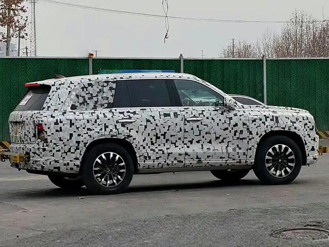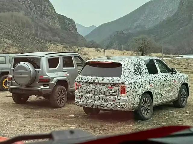 从曝光的谍照来看,这台坦克800的尺寸明显比坦克700要更长,整个车身看上去给人的感觉也更加饱满,不愧是被称作是“保定库里南”的车型。另外,新车外观造型不会采用激进的机甲风,而是会运用和坦克500车系所类似的豪华越野风格。