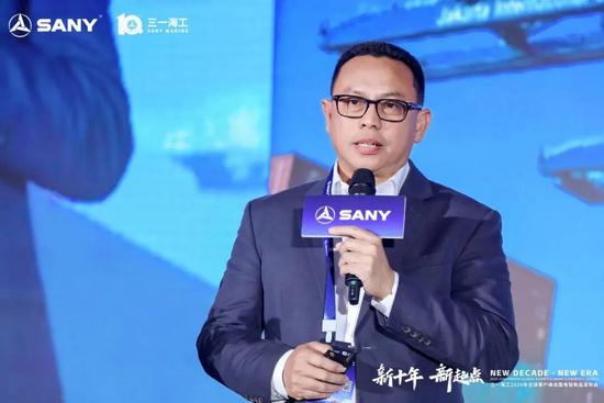 三一海工董事长周国元作企业发展规划讲话,总结了三一海工在市场、产品及服务的全面领先优势,并展望未来,期待与全球客户携手共创新辉煌。