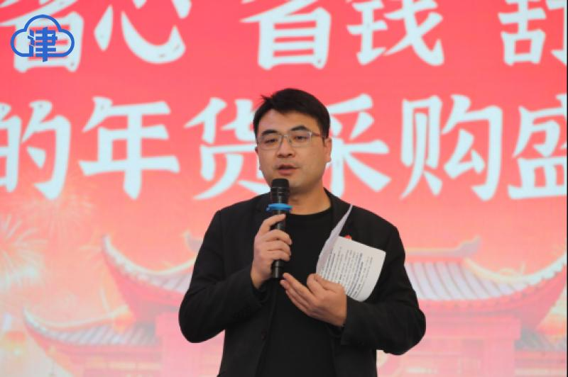 天津苏宁易购门店运营中心总经理崔伟介绍本次年货嘉年华带来的升级福利