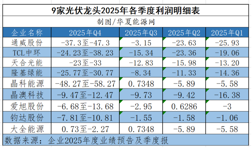 光伏寒冬依然冰冷刺骨:9大龙头2025年合计最高亏损500亿