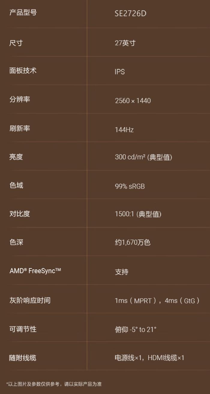 戴尔推出SE2726D显示器:27英寸2K 144Hz护眼屏,售899元