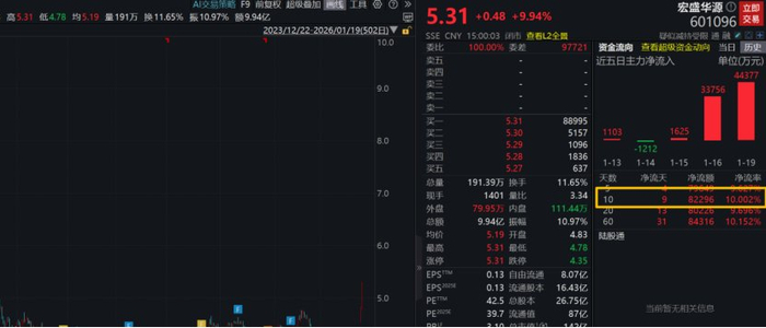 第四,主力资金持续净流入超8亿元。该股近10个交易日中主力资金净有9个交易日净流入8.4亿元。