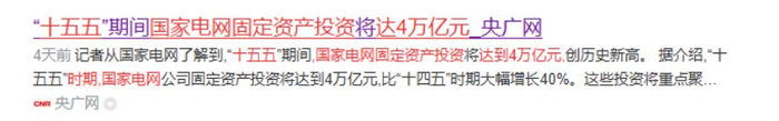 央媒报道,“十五五”时期,国家电网公司固定资产投资将达到4万亿元,比“十四五”时期大幅增长40%。国家电网此前表示,“十四五”期间,其固定资产投资预计完成2.85万亿元以上,较“十三五”增长约18%。