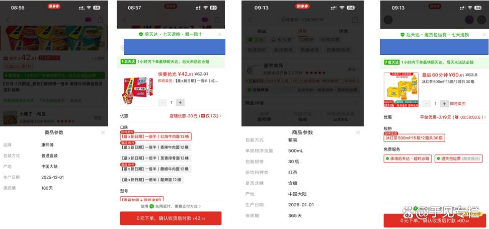 渠道多元化与碎片化带来的直接问题,则是价盘混乱现象加剧——这一问题已从单一品相蔓延至全品牌,从软饮料领域扩散至整个快消品行业。以康师傅为例,其香辣牛肉桶装面终端零售价为5元,而拼多多新日期同款到手价仅3.57元,渠道价差达1.43元;500ml装冰红茶终端零售价3.5元,拼多多同款新日期到手价低至2元,价差高达1.5元。