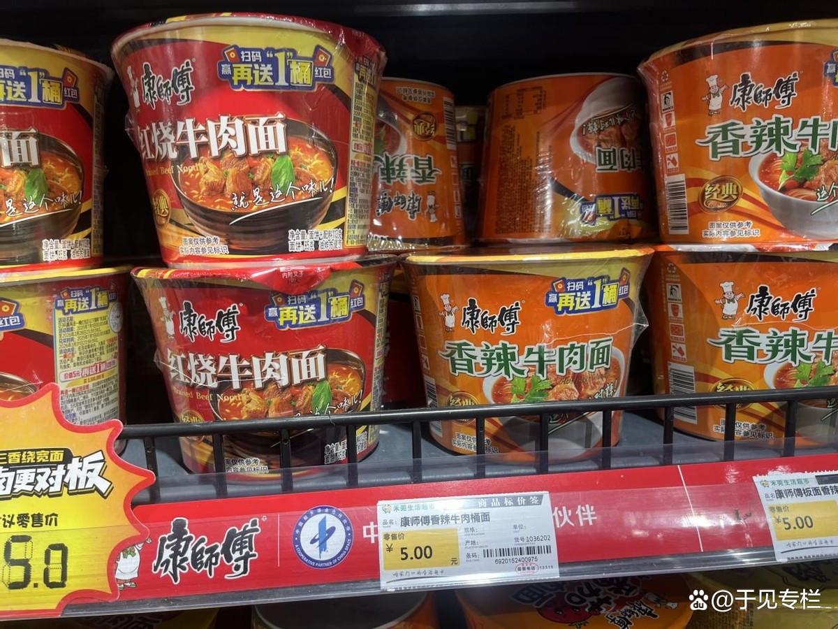 他举例称,曾有顾客看到店内康师傅香辣牛肉面两桶售价10元时质疑道:“你家康师傅怎么卖这么贵?隔壁零食店才卖3.9元/桶,电商平台更便宜,8块钱两桶卖我吧。”在刘杨拒绝后,还被顾客指责“不会做生意”。但实际情况是,该款香辣牛肉面终端拿货价就达4.1元/桶,门店利润空间本就微薄;且零食折扣店售卖的多为康师傅定制款,与终端常规款的克重并不一致,二者本就不具备直接比价的基础。